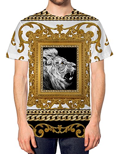 Best Seller! Lion Gold All Over Print T shirt Urban Hip Hop Swag Top Street King Chain MenX-LargeWhite Review